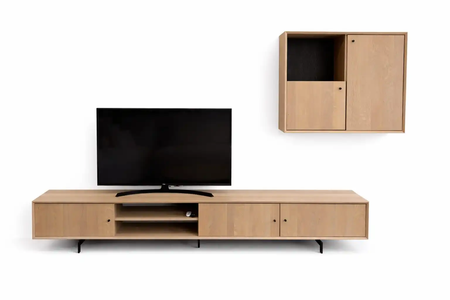 Dankzij de slimme indeling biedt de wandkast voldoende opbergruimte voor diverse spullen, terwijl het ontwerp tegelijkertijd rust en overzicht in je interieur brengt. Of je de kast nu gebruikt voor boeken, decoratie of servies, alles krijgt een mooie plek.