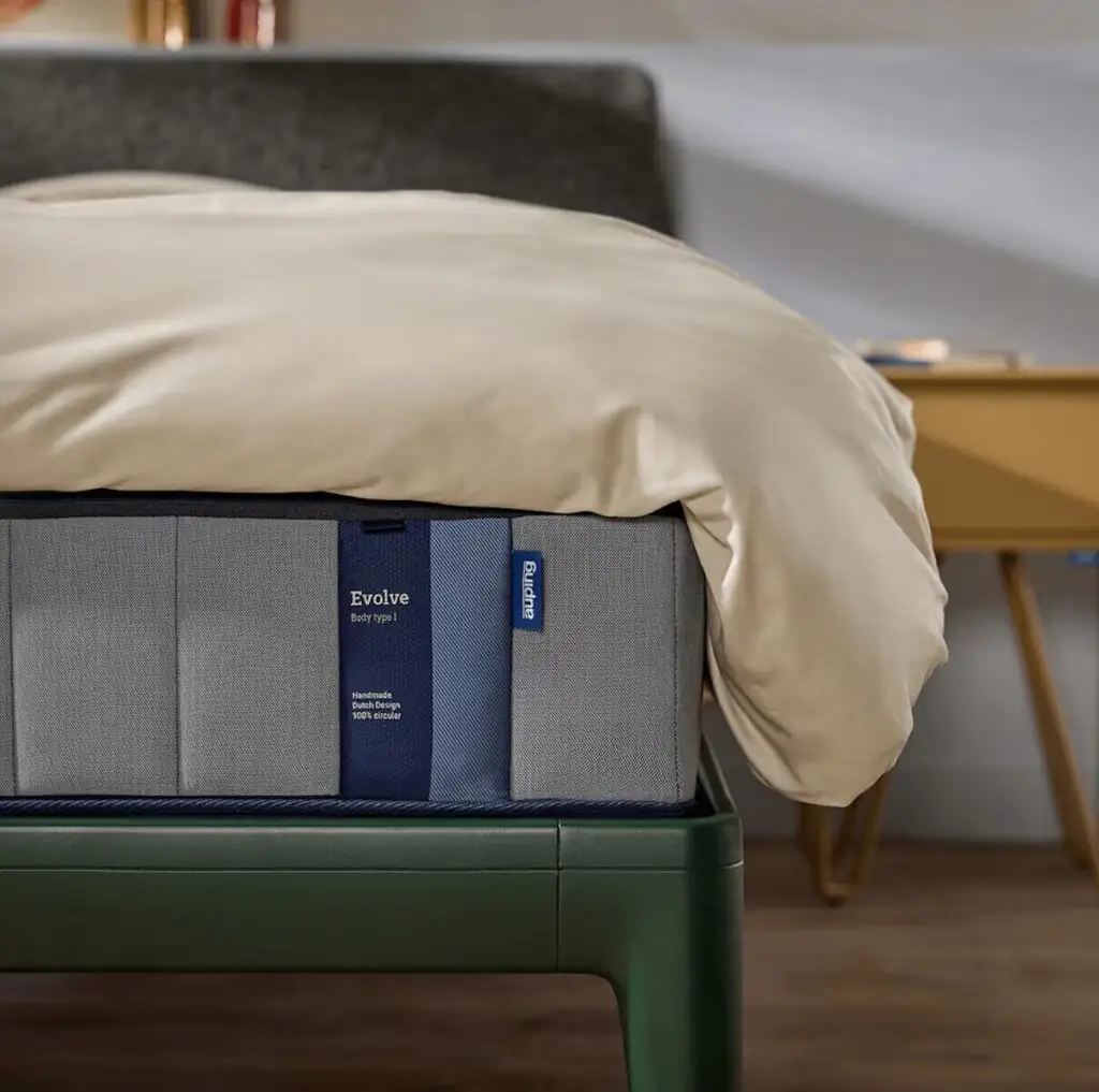 De Auping Evolve matras behoort tot de eerste volledig circulaire matrassen van het merk. Auping maakt dit matras voornamelijk van staal en polyester, twee materialen die opnieuw gebruikt kunnen worden. Daardoor kunnen de onderdelen later eenvoudig worden gescheiden en gerecycled. Bovendien bevat het ontwerp een productpaspoort waarin precies staat welke materialen zijn gebruikt. Zo blijft het productieproces transparant en overzichtelijk.