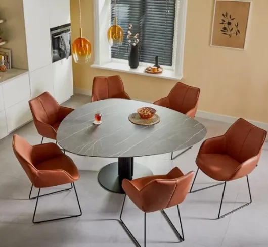 De Bree’s New World eetkamertafel Steely XL heeft een rustige, functionele uitstraling die past binnen een modern interieur. Het tafelblad en het slanke metalen onderstel vormen samen een evenwichtig geheel zonder op te vallen. De tafel voelt stevig en stabiel aan en biedt voldoende ruimte voor dagelijks gebruik, etentjes en werkmomenten. Het ontwerp is tijdloos, waardoor de tafel eenvoudig te combineren is met verschillende stoelen en woonstijlen.