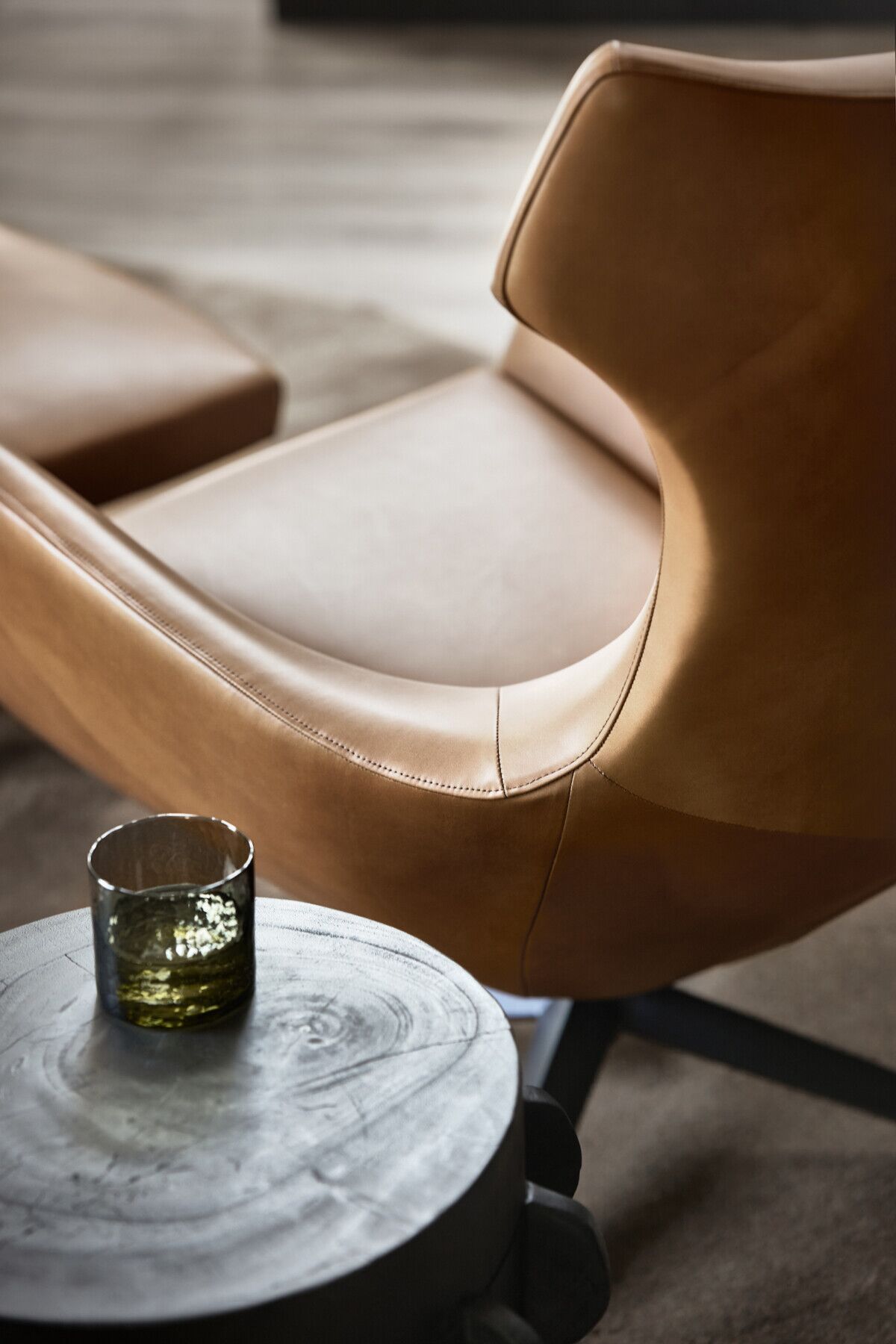 De Design on Stock Nosto fauteuil heeft een moderne, strakke uitstraling met een subtiel Scandinavisch karakter. De stoel staat iets verhoogd op slanke poten en heeft een open, luchtige vorm. De kussens zijn los en zacht, waardoor hij zowel uitnodigend als comfortabel oogt.