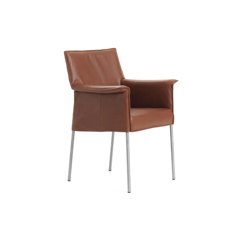 De Design on Stock Gola eetkamerstoel combineert comfort en modern design in één stijlvol geheel. Dankzij de ergonomisch gevormde zitting en rugleuning zit je urenlang ontspannen aan tafel. De stoel is leverbaar in diverse stoffen en leersoorten, waardoor personalisatie eenvoudig is en hij perfect aansluit bij jouw interieur. Het ranke onderstel geeft de stoel een luchtige uitstraling, terwijl de hoogwaardige materialen zorgen voor duurzaamheid en luxe. Met zijn tijdloze ontwerp en verfijnde details is de Gola een blikvanger die jarenlang comfort en stijl biedt.