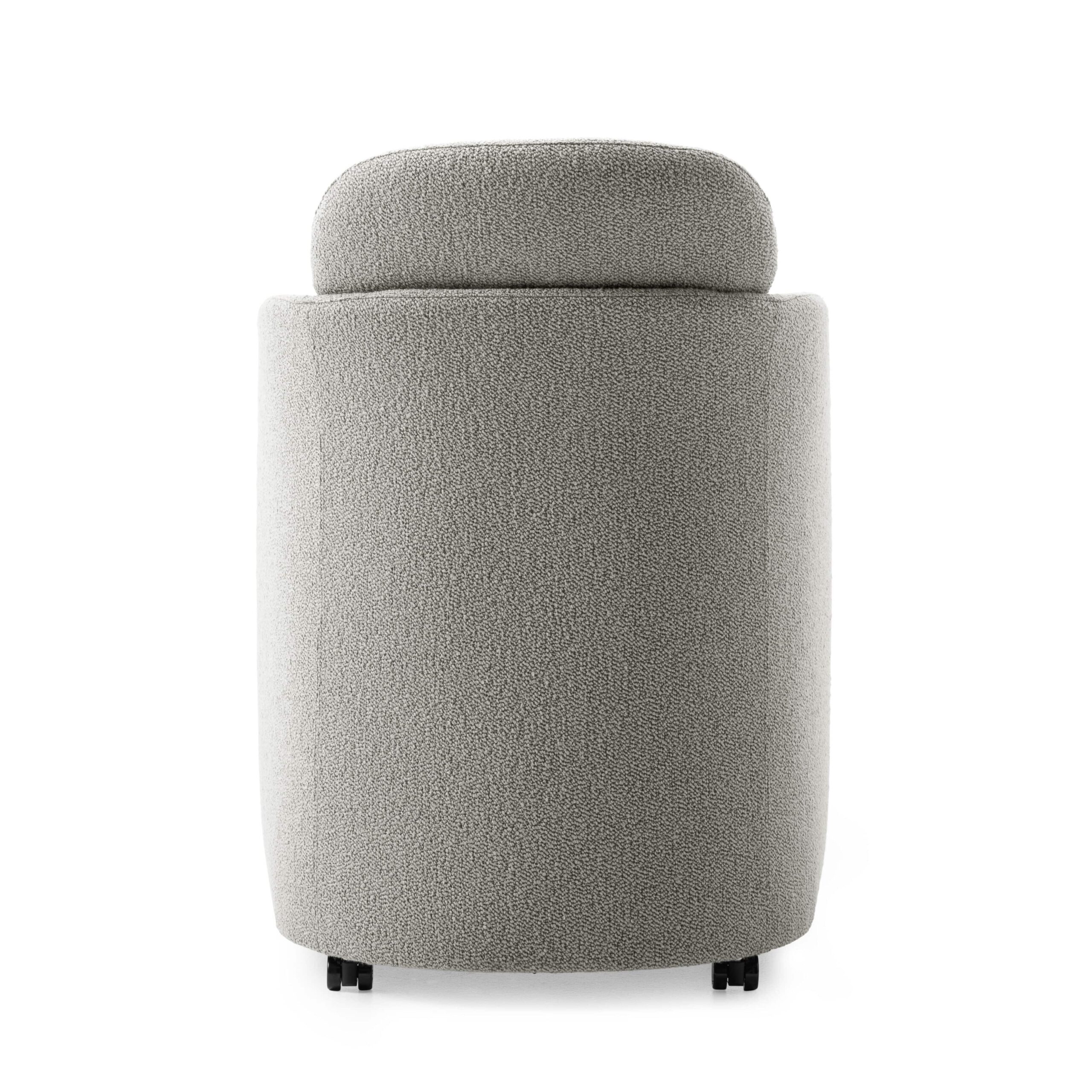 De Leolux Vynn is een kuipvormige eetkamerfauteuil die het lichaam elegant omsluit. Subtiele siernaden en de keuze tussen wieltjes of stalen poten combineren verfijnd vakmanschap met praktische functionaliteit.