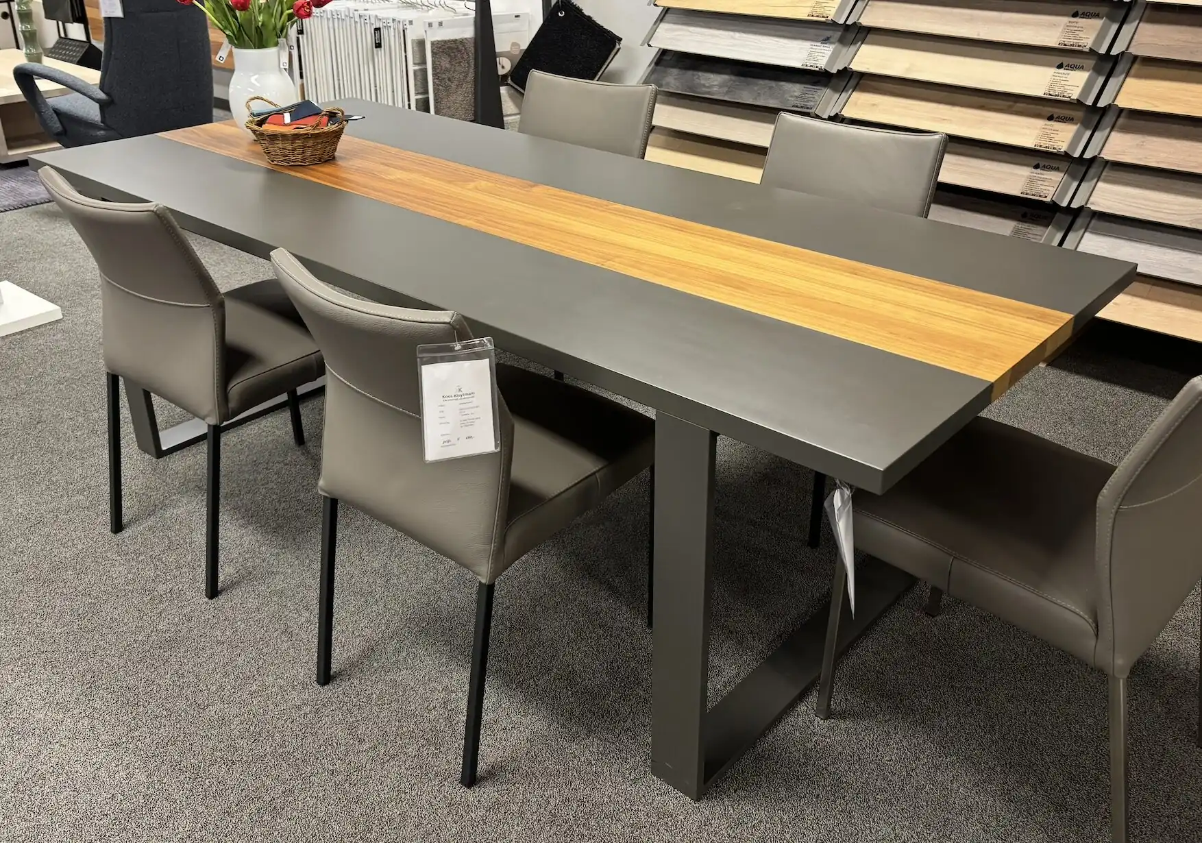 De Hülsta now eetkamertafel combineert strak design met een warme uitstraling dankzij de lakgrijze afwerking en notenaccenten. Met een afmeting van 240 x 100 x 75 cm biedt de tafel royale ruimte voor gezelschap en dinerervaringen. Het subtiele contrast tussen het lakgrijs en het natuurlijke notenhout voegt een moderne maar natuurlijke sfeer toe aan elke eetkamer. De tafel is stevig, functioneel en past zowel in ruime als compactere ruimtes, zonder zijn elegantie te verliezen.