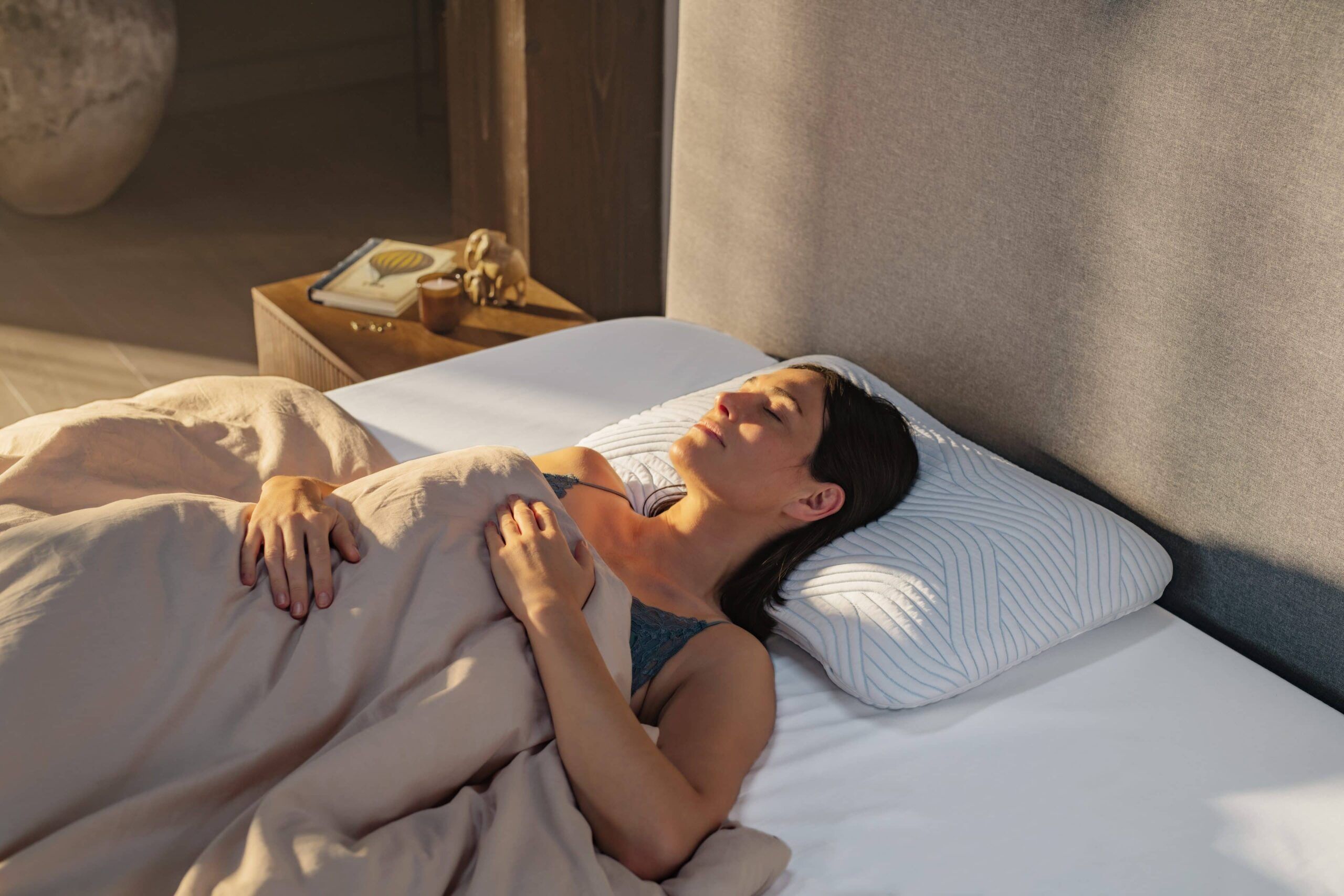 Het Tempur Symphony ergonomisch hoofdkussen biedt een rustige en ondersteunende slaapervaring. Door de speciaal ontworpen vorm past het zich aan de natuurlijke contouren van hoofd en nek aan, waardoor drukpunten worden verminderd. De zachte yet stevige vulling geeft een gevoel van stabiliteit zonder stijf aan te voelen. Dankzij de ademende materialen blijft het kussen fris, wat bijdraagt aan een aangename nachtrust en een ontspannen gevoel bij het ontwaken.