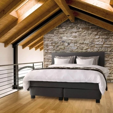 De Narvik beschikt bovenop het frame met Bonell veren over een losse pocketveringmatras. De twee veerlagen in het bed zijn dus individueel bekleed en afgedekt met lagen katoen en paardenhaar. Zo kun je zowel de losse matras als ook de topmatras draaien en keren. In de pocketveringmatras kun je voor maximale ontspanning een massagesysteem laten inbouwen.