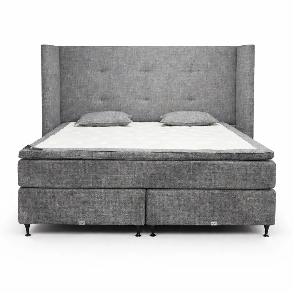 De Viking Royal Continental boxspring is normaal volledig naar wens samen te stellen in maat, stof en comfortniveau. Bij een showroommodel gaat het om een bestaande uitvoering, waardoor de samenstelling vaststaat. Dit maakt het een ideale keuze voor wie direct wil genieten van een complete en luxe boxspring zonder lange levertijd.